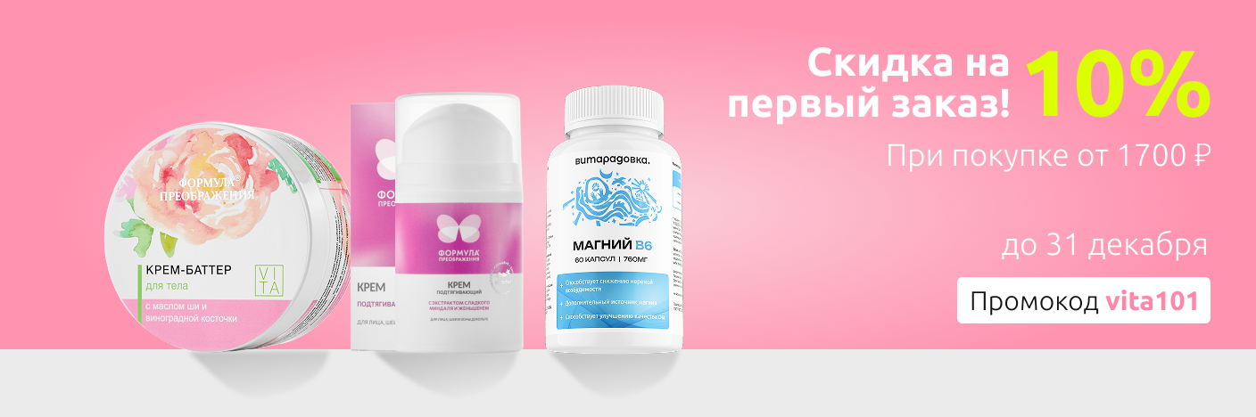Мы стали лучше, чтобы служить вам еще качественнее! Исследуйте новый сайт, добавляйте товары в корзину — как и раньше, по старым ценам. Для Вас мы приготовили сногсшибательные скидки - 10% по промокоду VITA101