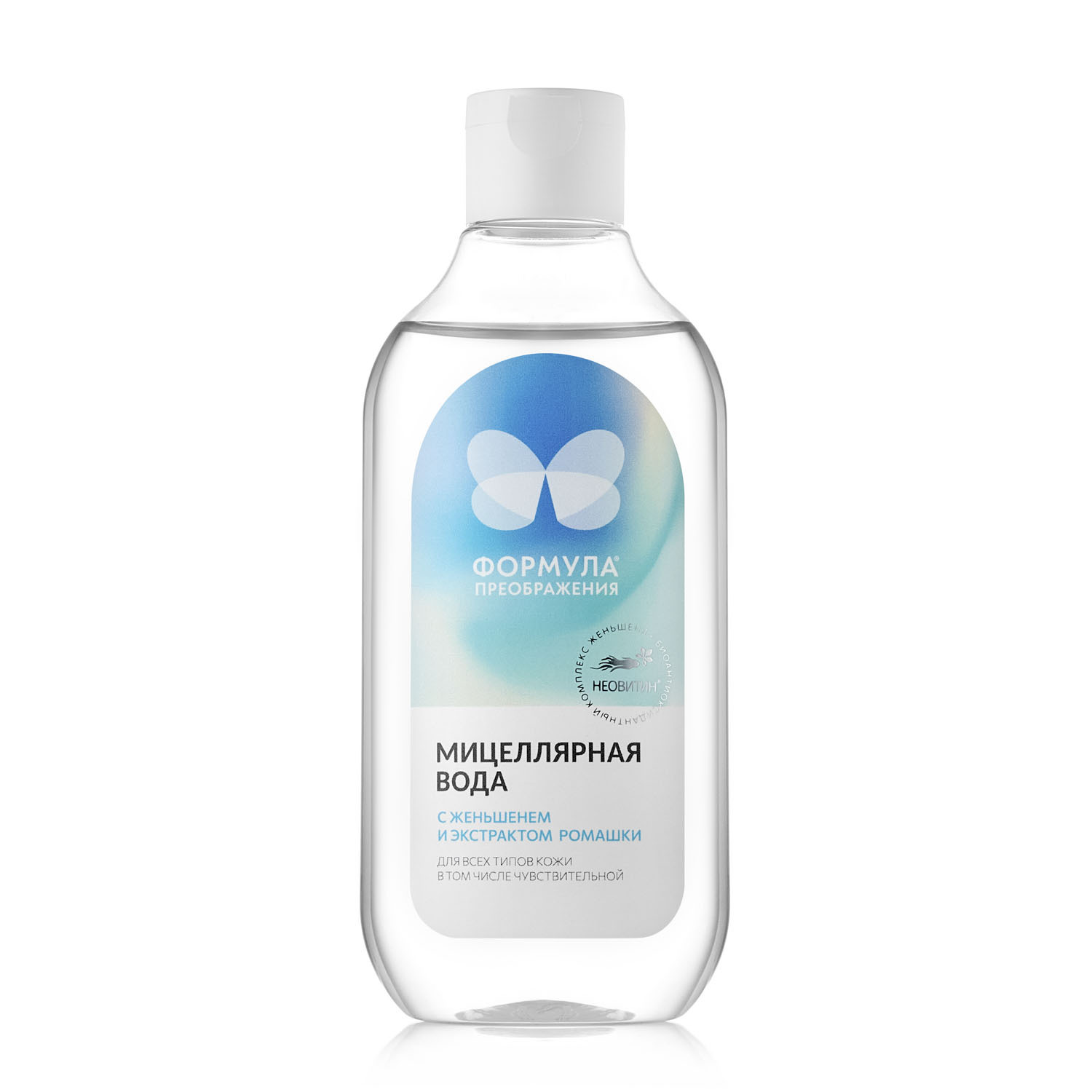 Хотите сияющую и здоровую кожу? Мицеллярная вода "Формула преображения" - ваш незаменимый помощник! Наша уникальная формула, обогащенная женьшенем и экстрактом ромашки, обеспечивает тройное действие: удаление макияжа, увлажнение и очищение. Забудьте о тяжелых ощущениях после использования других средств для снятия макияжа. Наша мицеллярная вода бережно очистит вашу кожу от загрязнений и излишков жирности без пересыхания или раздражения. Благодаря своей легкой текстуре, она быстро проникает в поры, освобождая кожу от всех следов макияжа. Насладитесь приятным ароматом ромашки каждый раз при использовании нашей продукции. Восстанавливающие свойства женьшеня позволят вашей коже выглядеть свежей и заметно подтянутой уже после первого применения. Мы гарантируем результаты! Попробуйте наше новое чудо-средство "Формула преображения" уже сегодня – это легко, удобно и эффективно. Всего несколько движений – и ваша кожа станет сияющей, гладкой и безупречной. Не упустите возможность преобразить свою кожу с мицеллярной водой "Формула преображения"!