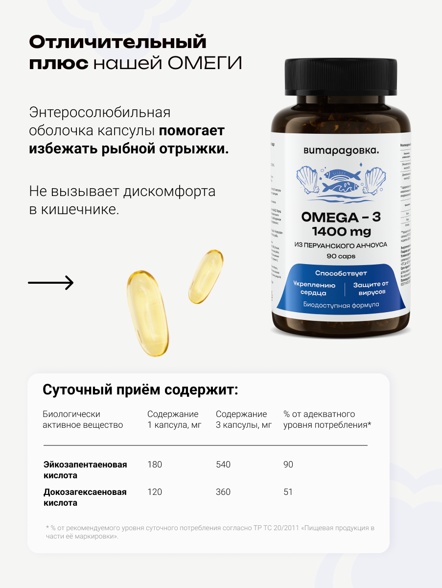 Омега-3 из перуанского анчоуса — это высокоэффективный, экологически чистый и безопасный источник полезных жирных кислот. Отличный выбор для тех, кто хочет получить максимум пользы без риска загрязнений.