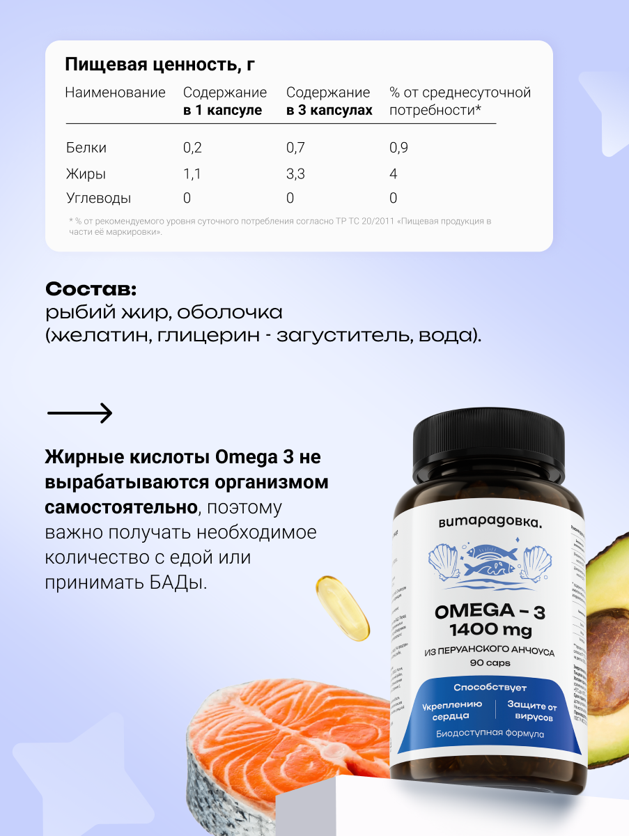 Витамин омега-3 в капсулах — это удобная форма приема полиненасыщенных жирных кислот, которые играют важную роль в поддержании здоровья организма.